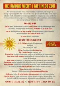 Voor sommigen lijkt 1 mei iets uit een ver verleden. Strijdliederen, rode vlaggen en de strijd tegen ongelijkheid. Maar niets is minder waar. Op 1 mei herleeft de Dag van de Arbeid in De Zon. Dorpscafé De Zon staat in het teken van arbeid, solidariteit en nieuwe ideeën. Met een programma vol discussie, film, poëzie, workshops, boekenstands, een aspergemaaltijd, strijdliederen en theater.